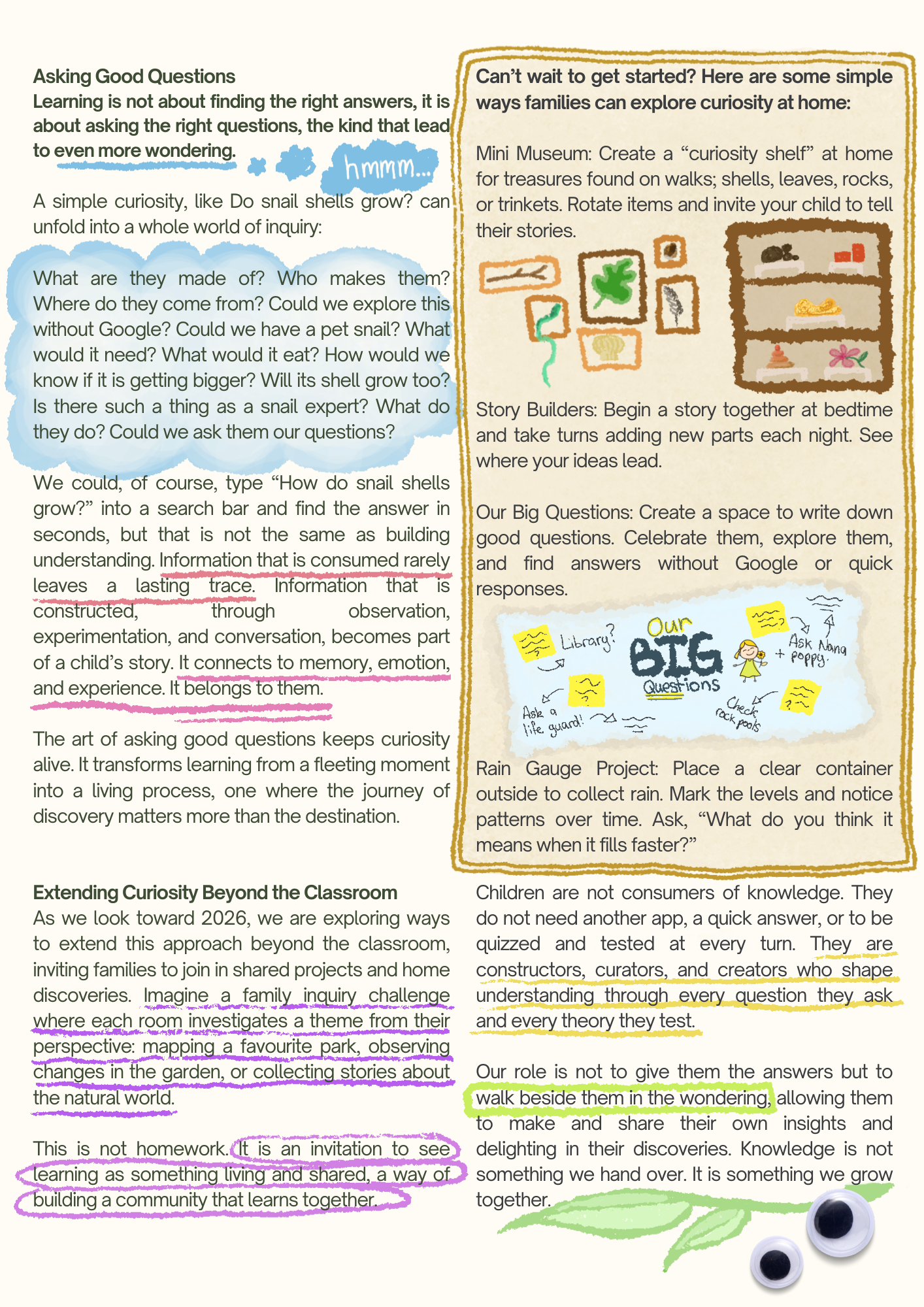 Through this newsletter, we aim to strengthen the bridge between our dedicated team and you, our wonderful parents, ensuring you’re always in the loop and part of our vibrant community.