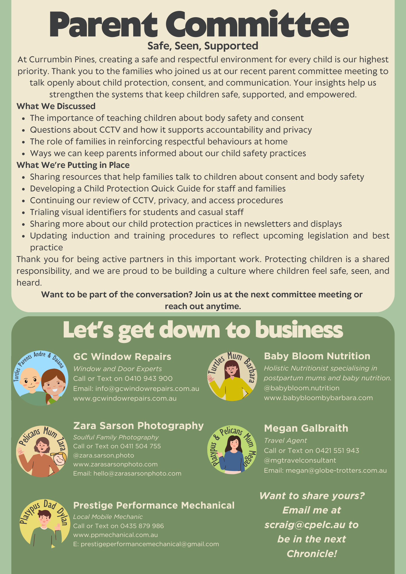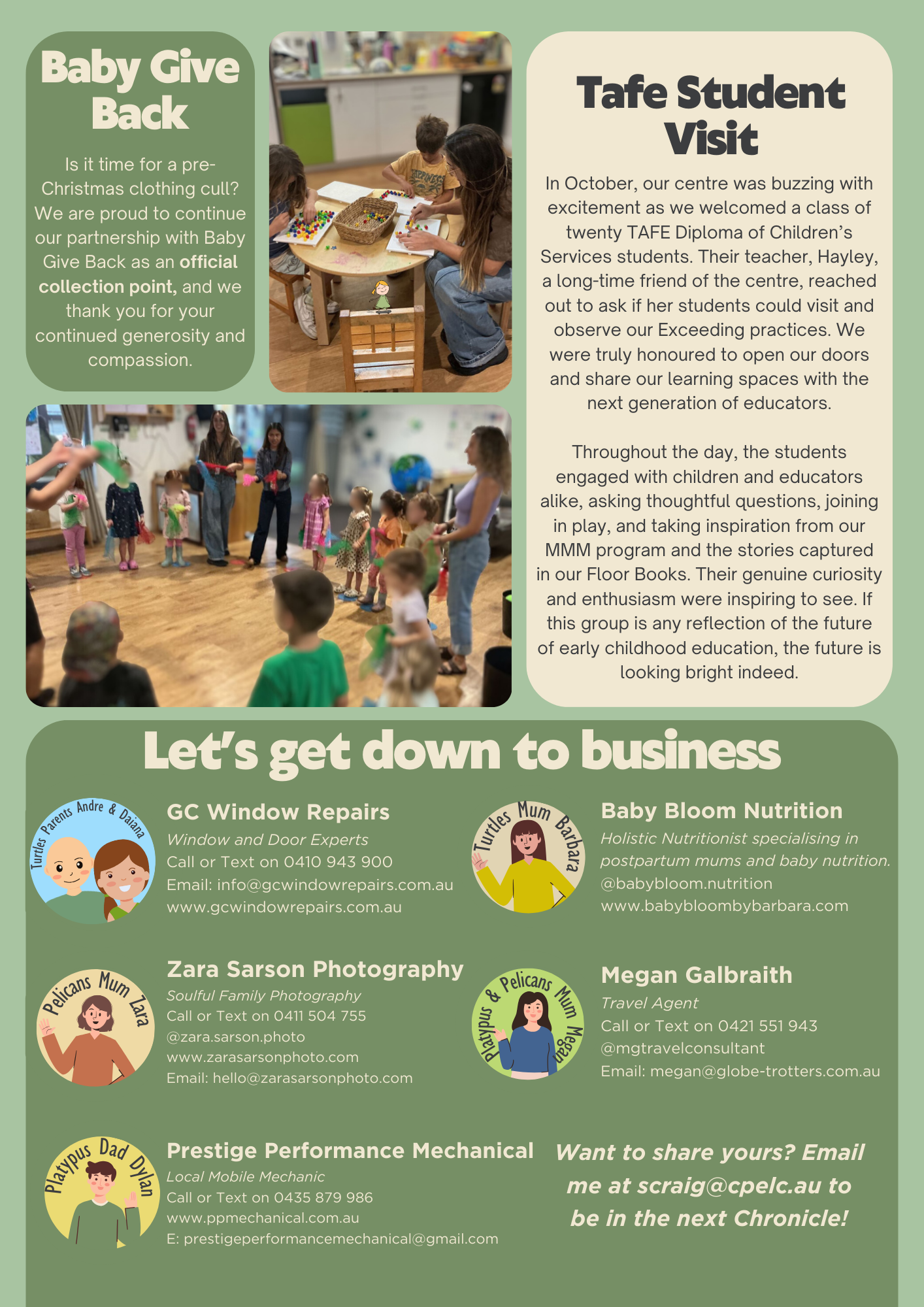 Stay up to date with the latest news from Currumbin Pines Early Learning Centre with our new newsletter, the CPELC Chronicle.