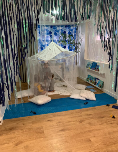 This project actually started in Antarctica, as the children were particularly interested in penguins at the time. During this stage the thoughts were around “How cold is Antarctica?” “Do people live there? “What other animals are there?”. The children built igloos, explored sensory ice trays, and read a range of books containing information to help form answers to these questions. As they moved to other ocean areas like coral reefs and the deep sea, the visual learning grew, creating a map of thoughts, ideas and shared knowledge that helped inform emergent questions.