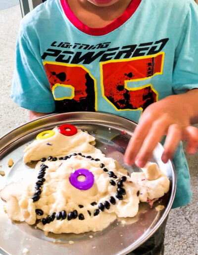 By the time we had watched a video of a submersible reaching the deepest point in the ocean the children were so good at showing their idea process that they immediately set to work building their own robots. Using mediums they were comfortable with such as clay, playdough, paint, drawing, lego and mixed media sculptures the class spent over a month working on robots of their own before contributing to a group sculpture of a deep sea robot named “Sharkbot”.